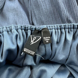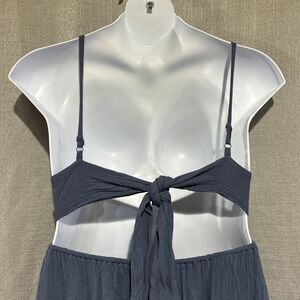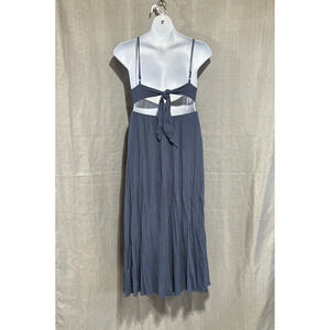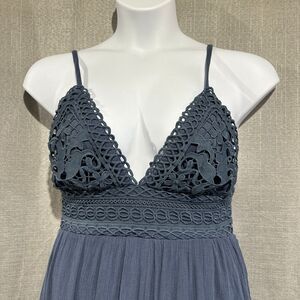Boho Babydoll Maxi Dress Medium Blue Y2K Tie Back Crochet Lace Coquette Flowy