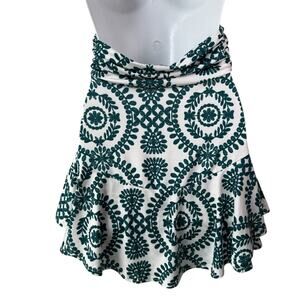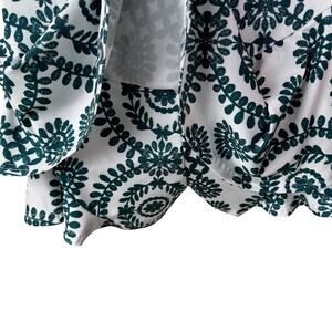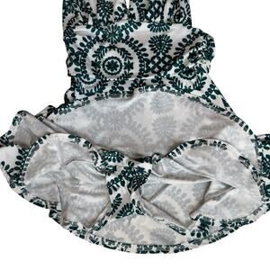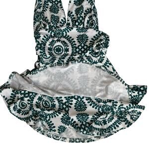 Boho Backless Halter Romper Sz Small White Green Floral Print Ruffle Resort READ