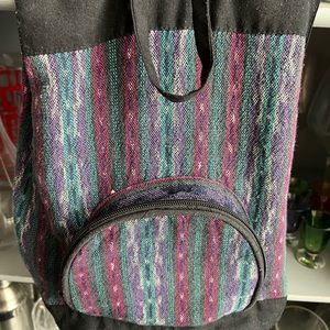 Gently gently bohemian style cloth backpack. Double side zippers, adjustable straps. Originally from independent shop Kuta, in Media, PA. Measures 11x10x5 inches, feel free to ask questions!