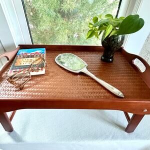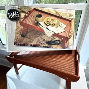 Boho Bali Collection Folding Bed Tray with Rattan Top by Pomerant – New in Box