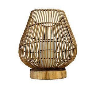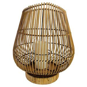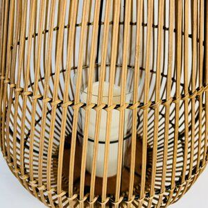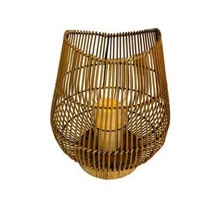 Illuminate your space with this charming handcrafted bamboo candle holder lantern. Its intricate, natural bamboo design pairs with a glass insert, creating a warm, rustic ambiance. This lantern not only adds a touch of boho elegance to your home but also serves as a functional and decorative piece.