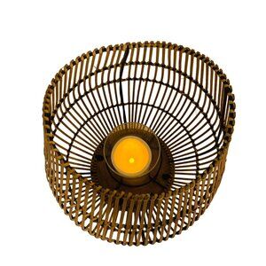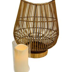 Boho Bamboo Candle Holder Lantern Glass Insert 16" Curved Rustic Home Decor Tabl