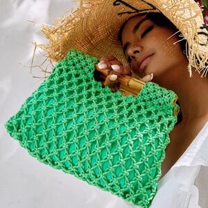 Boho Bamboo Top Handle Crochet Bag