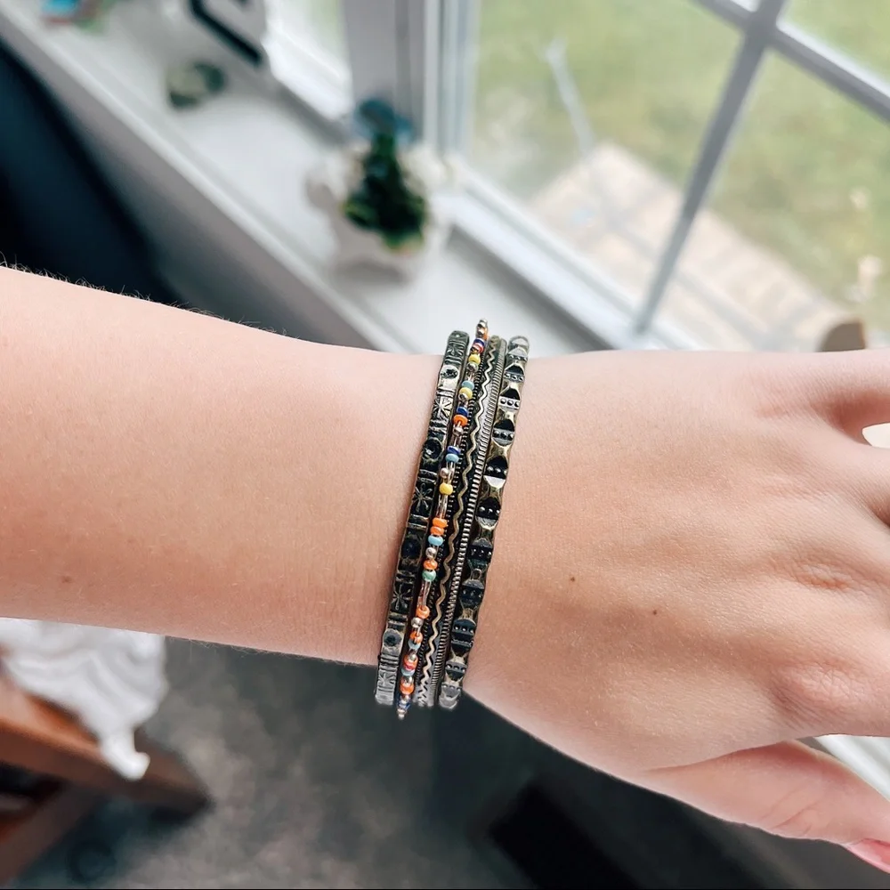 Set of 4 boho metal bangle bracelets. fits a medium to large sized wrist.