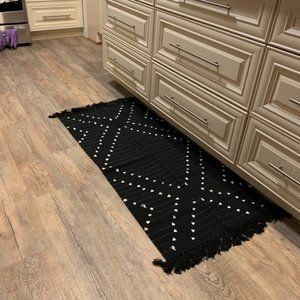 Boho Bathroom Runner Rug Black Geometric Washable Woven Cotton SIZE 2.3' X 5.3'