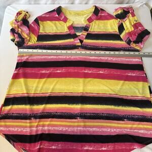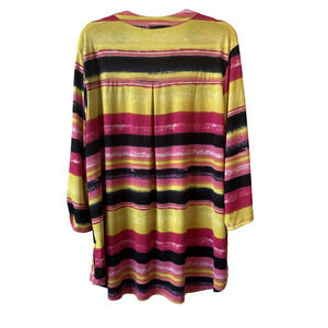 Boho Beach Womens Plus Size 3X Colorful Stripe 3/4 Roll Tab Stretch Tunic Travel
