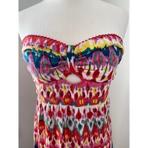 Beachy Strapless Smocked Babydoll Maxi Dress Colorful Whimsical Resort Wear