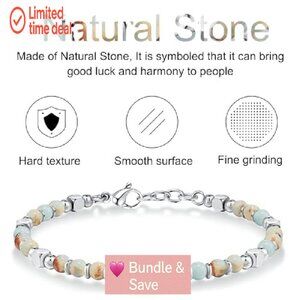 • Style: Features a mix of natural stone and stainless steel beads with a vacuum electroplated and polished finish for a dazzling look. Adorned with a lobster claw clasp and link chain for secure wear.