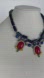 Navy blue and red beaded jeweled statement necklace