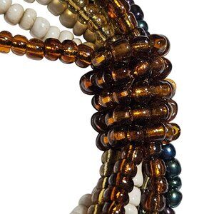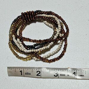 Boho Beaded Multi Strand Stretch Bracelet White Gold Brown Seed Beads Jewelry