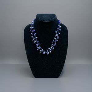 Boho Beaded Necklace Iridescent Purple Blue Glass Beads Layered Vintage Jewelry