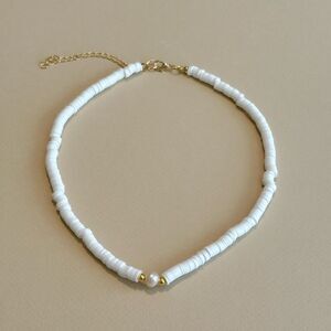 This elegant white beaded necklace adds a touch of sophistication to any outfit. Perfect for any occasion.