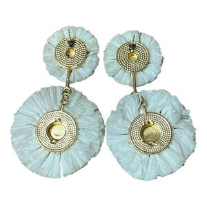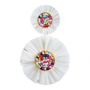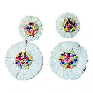 Boho Beaded Rattan Raffia Summer Statement Earrings Dangle Rainbow White 2.5"