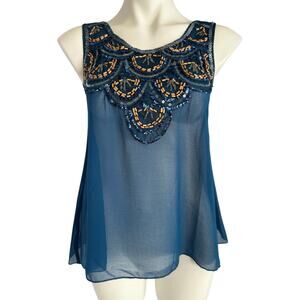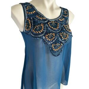 Boho Beaded Sequin Embellished Sheer Tank Size Small Office Siren Lingerie