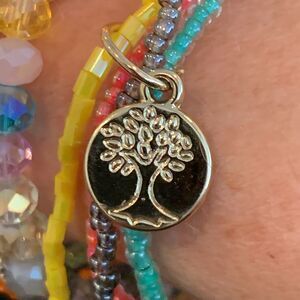 Each one features four individual strands of glass seed beads and its own gold-tone charm for a layered look that feels casual and sun-kissed.