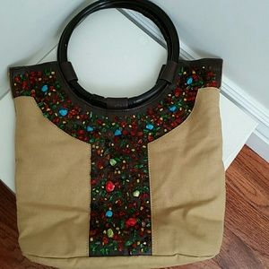 Boho Beautiful stone/jewelry cute hoop handle bag.