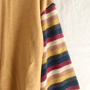 Fall Shift Sweater, Oversized Fit, Stripe Chenille Sleeves, Solid Color Bodice, Round Neckline, Soft Lightweight, Dropped Shoulder