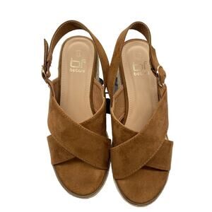 Boho Betani Sky High Platform Cottage Wedge Espadrille Leather Strap 7.5 Sandals. Sky High platform wedge in a Soft Brown Leather perfect for a Boho style with Jeans. Adjustable Back Buckle. Pair with a tiered skirt for a Cottage Core style. Pair with Crop Jeans and Beach blouse's for a day.