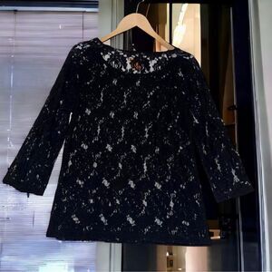 โจ Elevate your wardrobe with this Boho Black Lace 3/4 Sleeve Joe Fresh pullover layering top in excellent pre-owned condition.