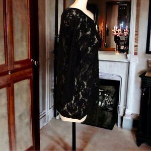 Boho Black Floral Lace Joe Fresh Sheer Layering Top - Size Medium EUC