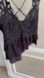 Boho Black Lace Bralette Cami Top Tiered Sheer Ruffle Hem Romantic Goth Size M