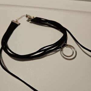 Boho Black Suede Choker Silver Hardware see measurements