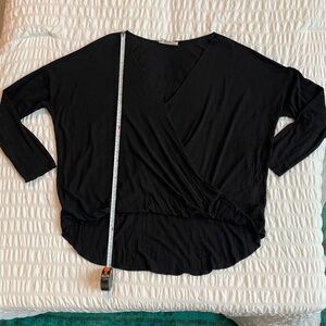 🌟 Boho Black V Neck Long Sleeve Draped Surplice Top Size L