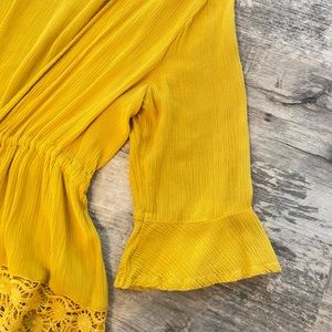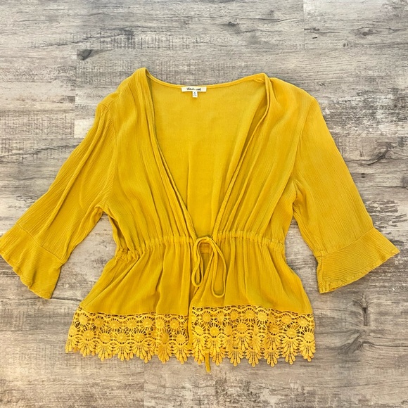 Pre worn, great condition! boho blouse, super cute with a bralette underneath! Ties to close, can wear open as well.
