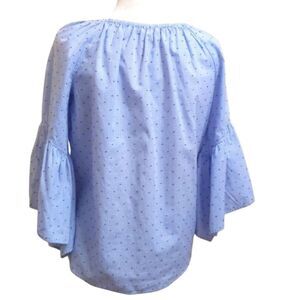 Boho Blue BellSleeve Smocked Flocked Blouse Sz S/P