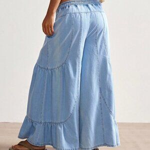 Boho Blue Casual Women's Vacation Patchwork Design Loose Wide-Leg Denim Jeans