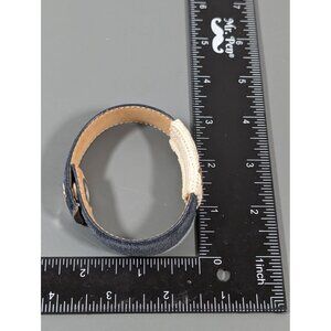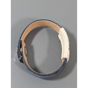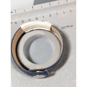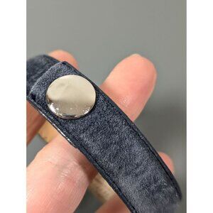 Boho Blue Faux Suede Embroidered Love Snap Cuff Bracelet 7.5"
