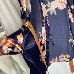 Boho Blue Floral Robe with Pleather Belt