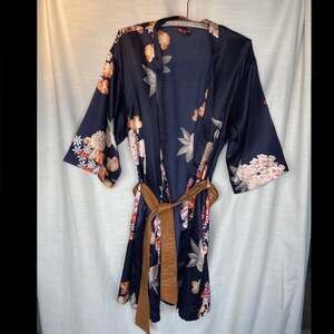 Blue Floral Robe with Pleather Belt