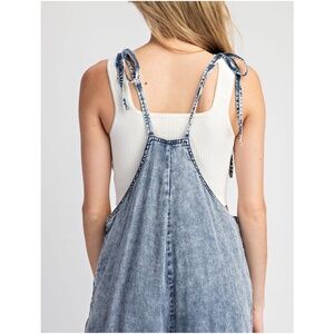 Boho Blue Mineral Washed Wide Leg Pockets Jumpsuit