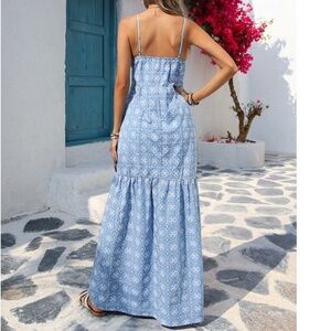 Boho Blue Ruffle Hem Cami Straps Maxi Dress