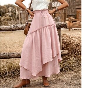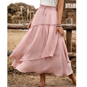 Boho Blush Pink High waisted Stretchy Waist Maxi skirt