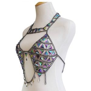 Sexy body chain bra made of high quality hard alloy.Sturdy and shiny for everyday wear.