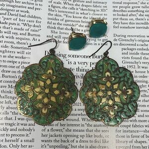 Boho Bohemian Green Blue Southwestern Earrings Set of 2 pair