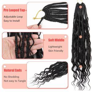 🖤 Boho Box Braids with Human Hair Curls ~ NIB!
