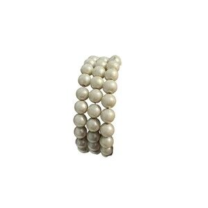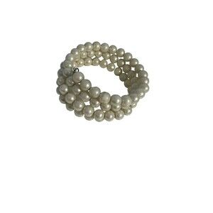 Boho Bracelet White Multi Strand Goldtone Beaded Wire Wrap Cuff Bangle 8 Strand