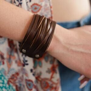 Unveil your inner bohemian spirit with this braided leather cuff bracelet that comes with an adjustable clasp for a perfect fit. The intricate design adds a touch of elegance to your wrist, making it a versatile piece that can be worn on various occasions. The adjustable clasp ensures that the bracelet stays secure, allowing you to go about your day with confidence. This bracelet is more than just an accessory; it's a statement of your unique style. 100% Leather