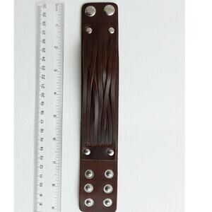 Boho Braided Leather Wide Wrap Adjustable Snap Cuff Bracelet Brown