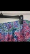 Patterns of magenta pink and cerulean blue dance across this unique, alluring skirt. Two long front panel slits create movement and interest.