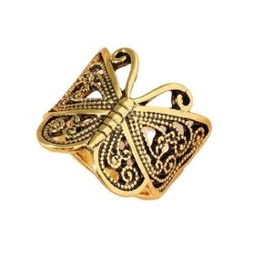 Boho Bronze Tone Butterfly Decor Statement Ring