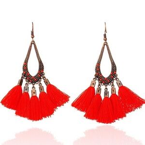 Boho Bronze Yarn Tassel Drop Fashion Earrings