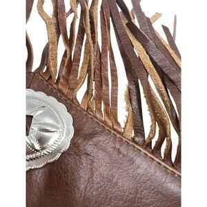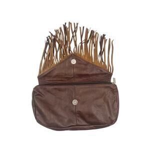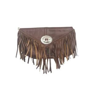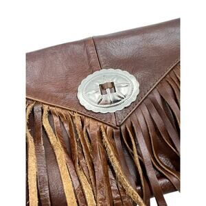 Boho Brown Genuine Leather Made In Mexico Fringe Western Boho Concho Clutch Bag