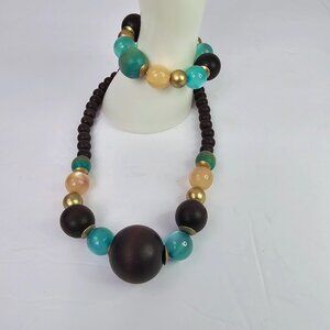 Boho Brown & Turquoise Chunky Beaded Fashion Necklace Set