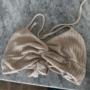 4. SHEIN Knit Crop Top – waffle-texture tie, tan, Small