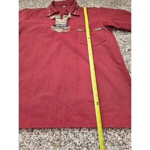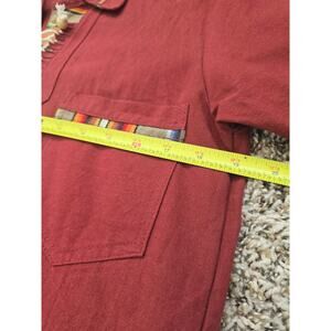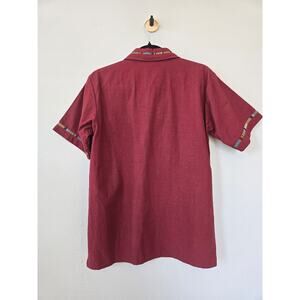Boho Burgundy Baja Shirt w/ Woven Accents | Handmade Mexican Pullover Top Size S