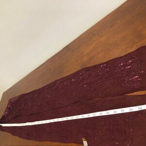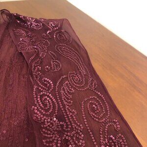 -Burgundy. Sequin. Lightweight. No branding or fabric tag.